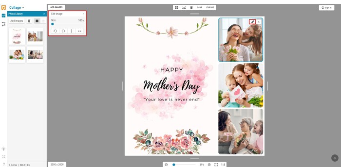 Ngoài ra, bạn còn có thể điều chỉnh vị trí ảnh bằng cách nhấn giữ và kéo để chọn phần được hiển thị theo ý muốn, hoặc click chọn biểu tượng “Edit Image” chỉnh sửa kích thước của ảnh trong từng khung hình nhỏ.