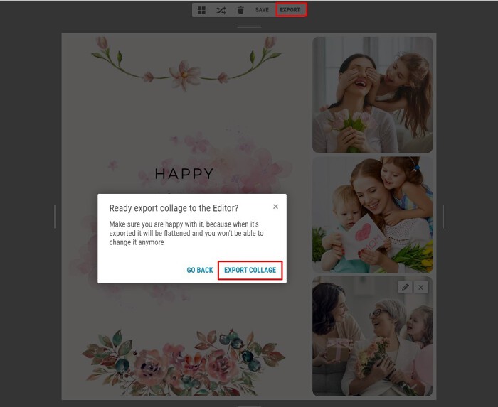 Bước 6: Sau khi có một hình ghép ưng ý, bạn sẽ nhấn chọn ô “Export” -> “Export Collage” để xuất file ảnh vừa ghép.