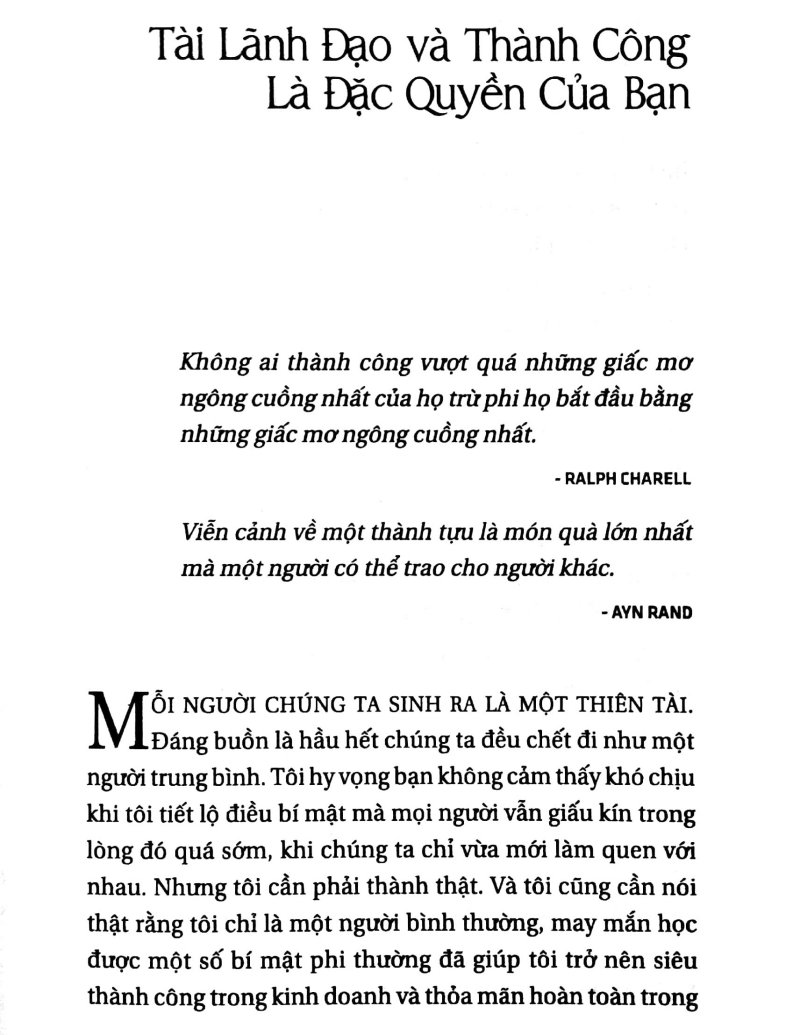 Bất kể bạn làm gì trong tổ chức và cuộc sống hiện tại của bạn như thế nào, một thực tế quan trọng duy nhất là bạn có khả năng thể hiện năng lực lãnh đạo. Cho dù sự nghiệp hiện tại của bạn đang ở đâu, bạn vẫn luôn cần phải thể hiện những khả năng tột đỉnh của mình. Cuốn sách này sẽ hướng dẫn bạn làm thế nào để khai thác tối đa khả năng đó, cũng như thay đổi cuộc sống và thế giới xung quanh bạn.