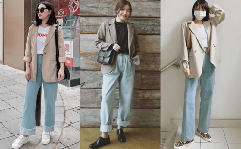 Khi kết hợp quần jean ống rộng với áo blazer, bạn sẽ có một gợi ý trang phục hoàn hảo cho các cô nàng công sở. Phong cách này tạo nên vẻ sành điệu và quý phái. Đồng thời, bạn có thể kết hợp với giày cao gót hoặc sandal để tăng thêm vẻ hoàn hảo cho outfit.
