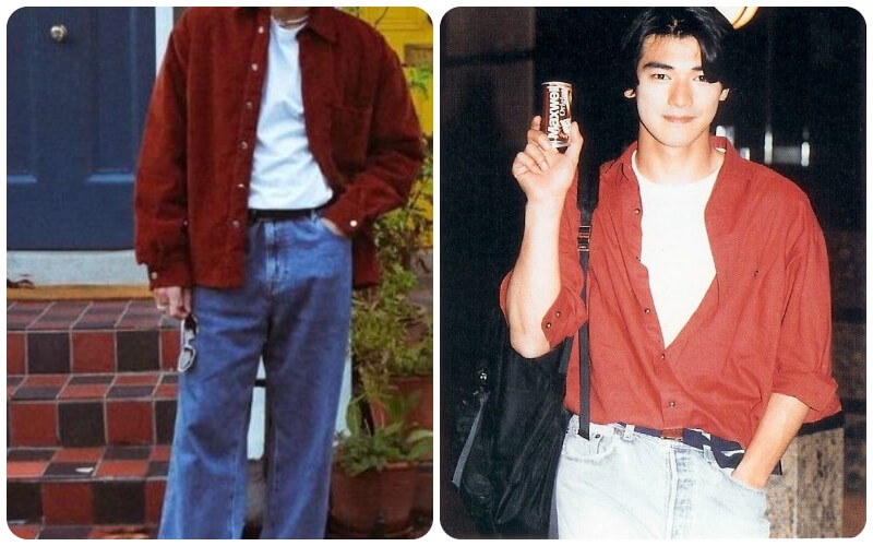 Phối quần jean ống rộng nam với chiếc áo khoác đỏ bên ngoài đã trở thành một xu hướng thời trang phổ biến vào các thập niên trước. Đặc biệt ở Hong Kong, khi các diễn viên nam nổi tiếng thường mặc kiểu này. Nếu bạn là một anh chàng yêu thích phong cách cổ điển, bạn có thể thử sức với kiểu phối này.