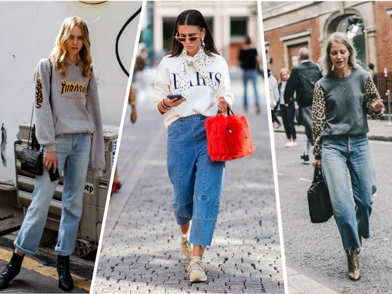 8. Tiện lợi và dễ phối cùng với áo nỉ mix quần jean ống rộng
