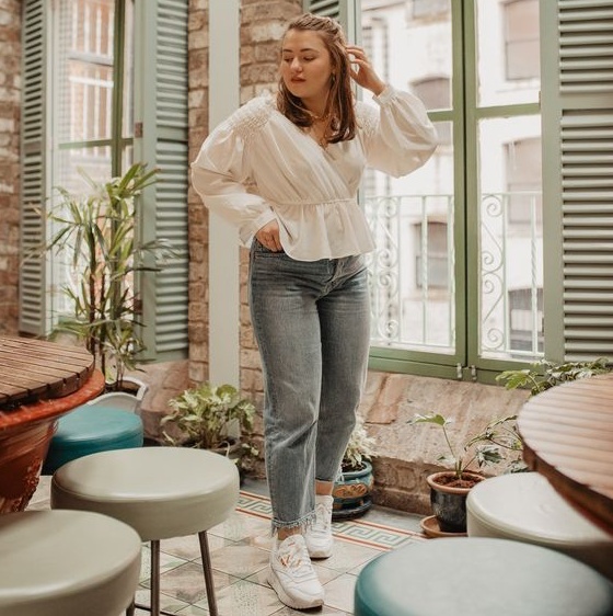 Nếu bạn có thân hình mũm mĩm nhưng thích mặc quần ống suông, nên tránh áo sơ mi loại oversize để không bị luộm thuộm. Thay vào đó, hãy chọn những thiết kế áo sơ mi vừa vặn nhưng không quá ôm cơ thể. Cách mix đồ này sẽ giúp bạn có một set đồ mới mẻ, cá tính và vẫn giữ được sự thanh lịch, duyên dáng.