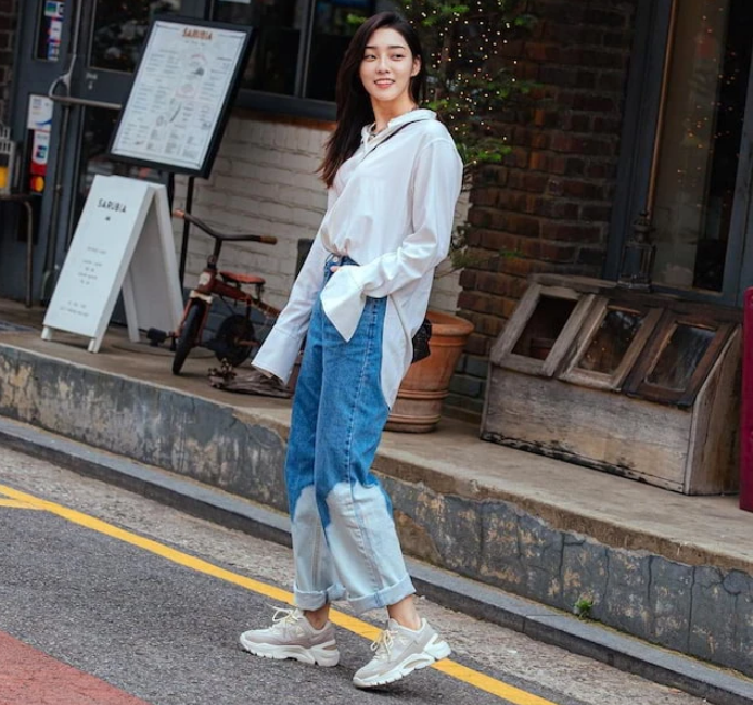 Nếu bạn ưa chuộng sự kín đáo, thì cách mix đồ này là gợi ý hoàn hảo dành cho bạn. Để hoàn thiện trang phục, bạn có thể sơ vin vào gọn gàng và mang thêm một chiếc túi xách, kết hợp cùng một đôi giày thể thao để tôn lên nét trẻ trung của bản thân.