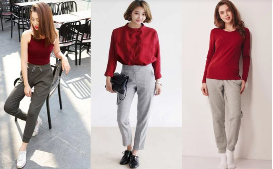 Nếu bạn đang tìm kiếm một lựa chọn phù hợp để phối với quần xám, áo màu đỏ sẽ là một sự lựa chọn tuyệt vời. Bộ trang phục này sẽ giúp bạn tỏa sáng và tràn đầy năng lượng với phong cách vô cùng thời trang.