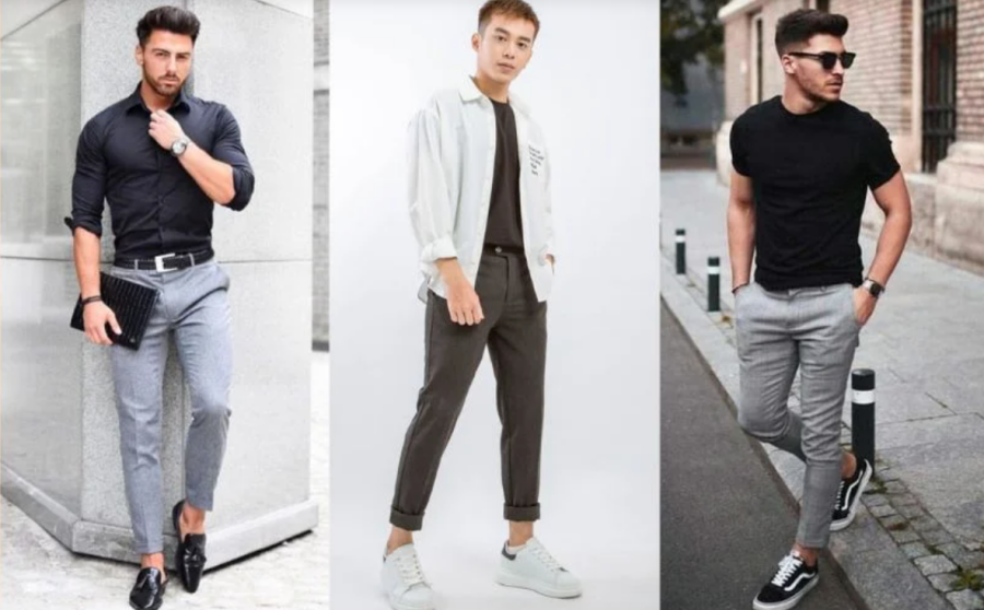 - Nếu bạn muốn tạo ra sự tương phản, bạn có thể kết hợp quần xám với áo màu đen hoặc trắng.