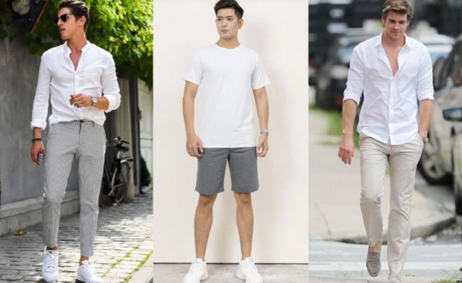 Nếu bạn mix áo thun hoặc sơ mi tay hiện đại, thì quần baggy hoặc quần short là sự lựa chọn phù hợp nhất. Đừng quên thêm đôi giày sneaker trắng quen thuộc vào trang phục của mình.