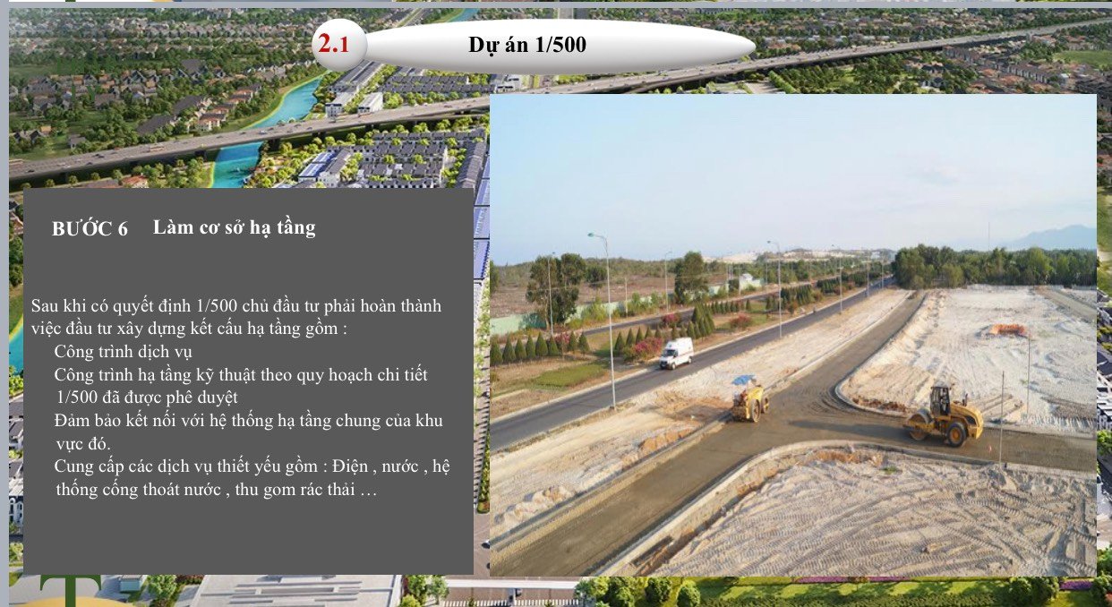Sau khi có quyết định quy hoạch 1/500 chi tiết, chủ đầu tư phải hoàn thành việc đầu tư xây dựng kết cấu hạ tầng gồm:
