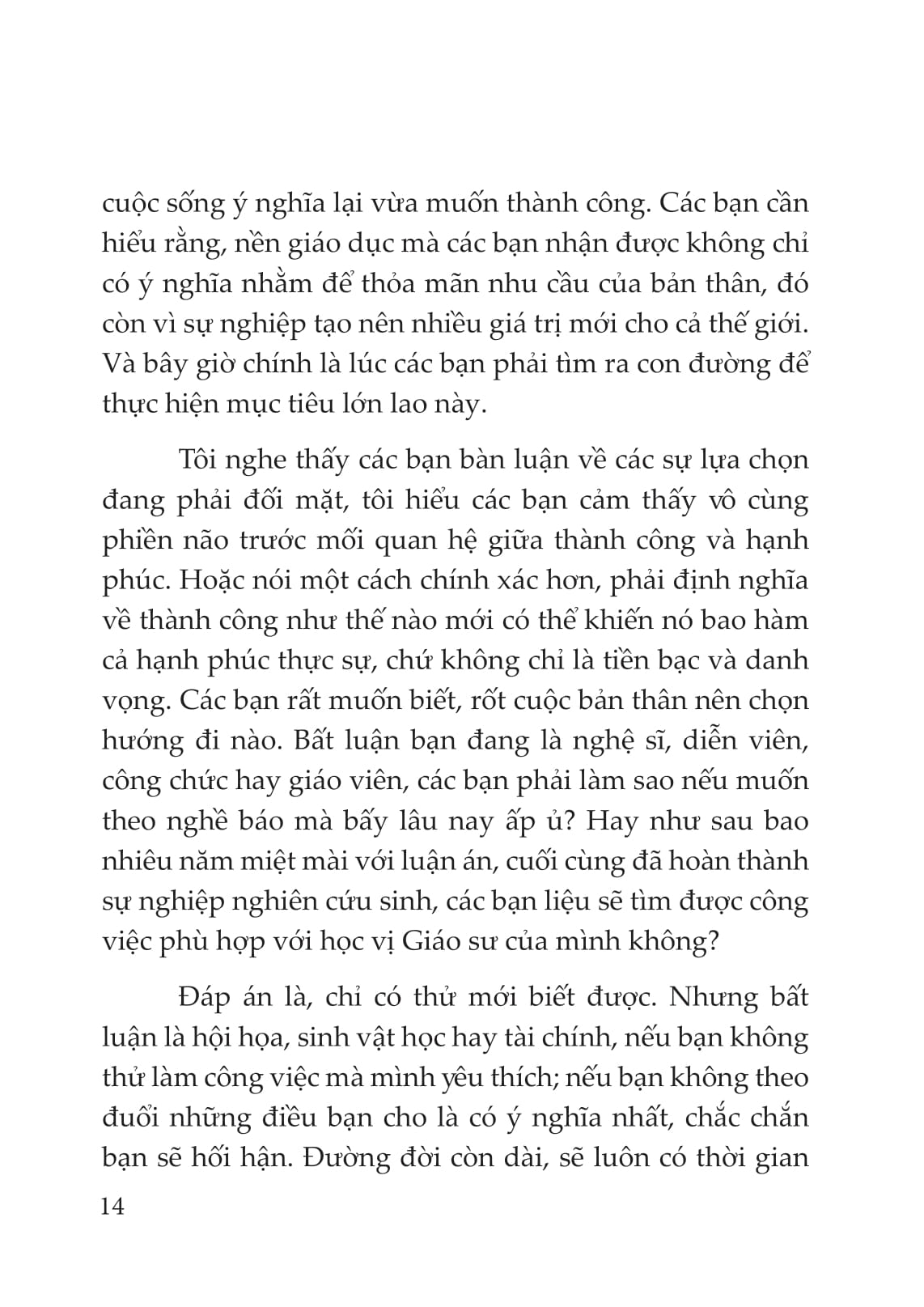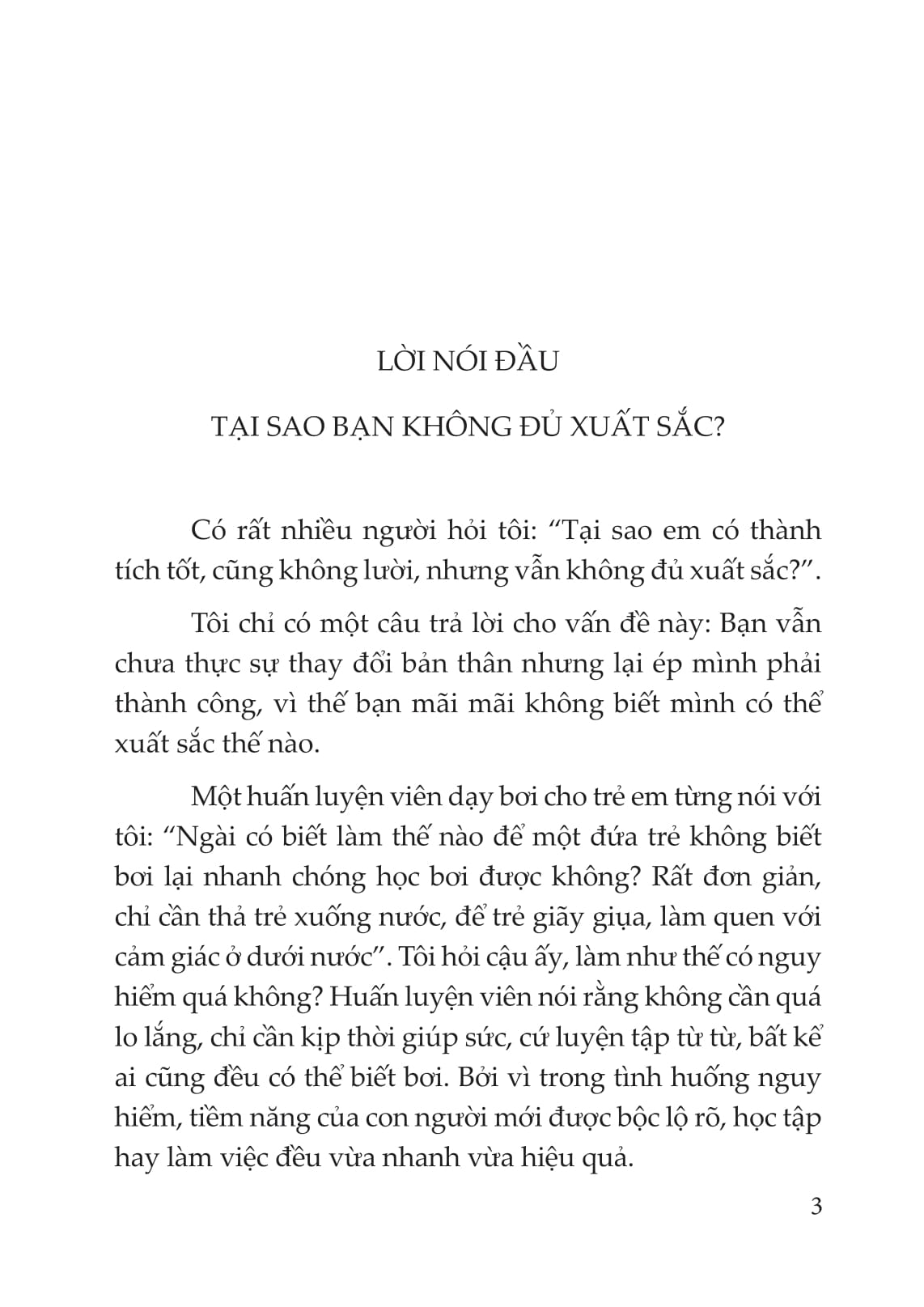 Ngắn gọn súc tích nhưng truyền động lực lớn đến với mỗi người, lời khuyên đã có, làm được hay không là do chính bạn quyết định. Nhiềungười khác làm được, không có lí gì mà bạn lại chùn chân.