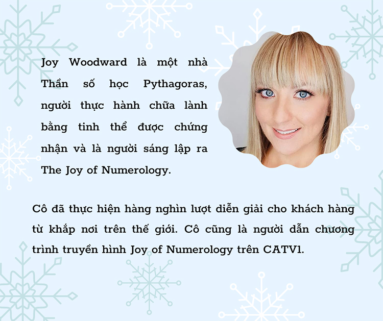 Tác giả: Joy Woodward là một nhà Thần số học Pythagoras, người thực hành chữa lành bằng tinh thể được chứng nhận và là người sáng lập ra The Joy of Numerology. Cô đã thực hiện hàng nghìn lượt diễn giải cho khách hàng từ khắp nơi trên thế giới. Cô cũng là người dẫn chương trình truyền hình Joy of Numerology trên CATV1.
