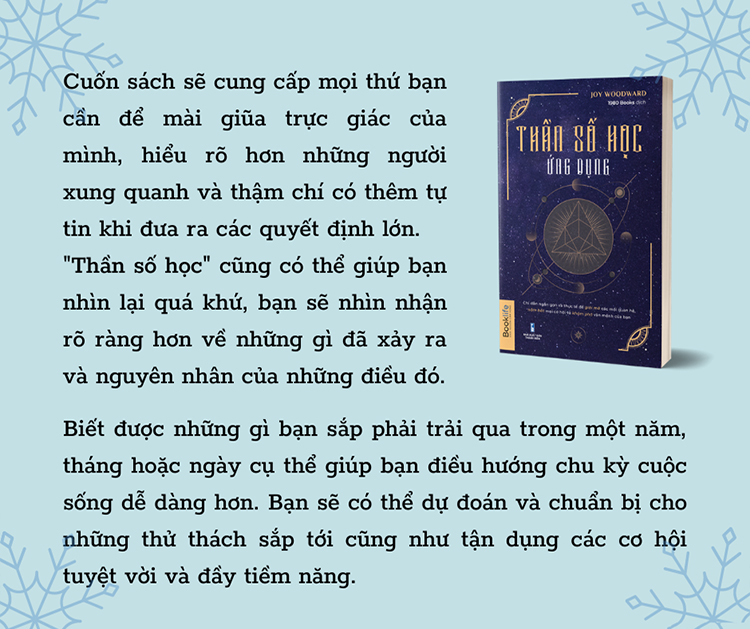 Thần Số Học Ứng Dụng là cuốn sách được chấp bút bởi tác giả Joy Woodward, do NXB Công Thương xuất bản. Nội dung cuốn sách Nội dung cuốn sách giúp bạn giải mã bí mật đằng sau mỗi cái tên, mỗi ngày tháng và mỗi con số. Từ đó, bạn hiểu sâu sắc hơn về bản thân, các mối quan hệ và số phận của mình.
