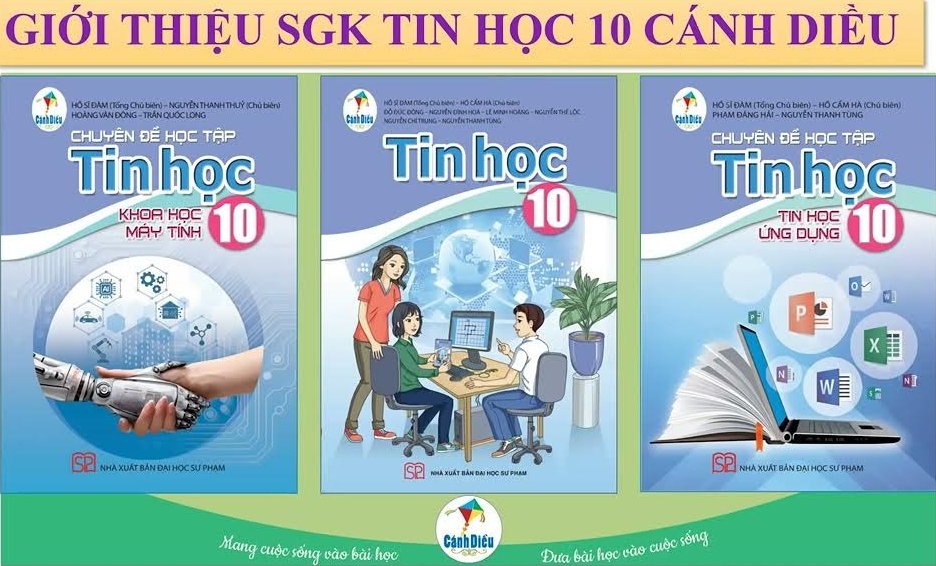 Bộ sách giáo khoa Tin học Cánh Diều ở lớp 10 gồm ba quyển: quyển Tin học 10 về nội dung cốt lõi và hai quyển chuyên để học tập tương ứng với hai định hưởng ICT và CS.