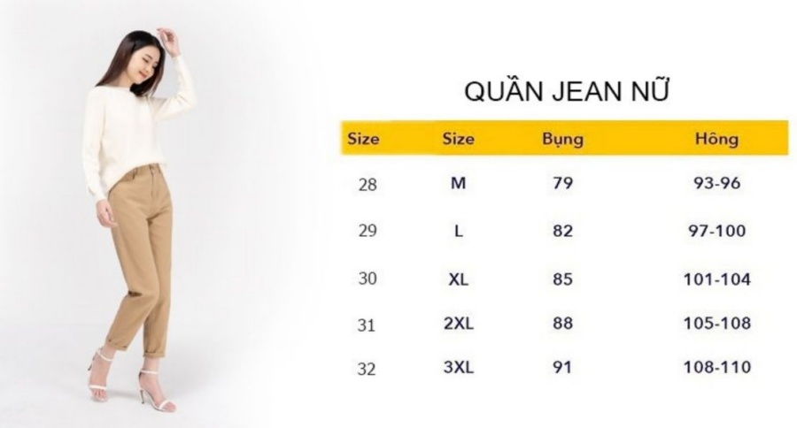 | BẢNG SIZE THEO CƠ THỂ NỮ | |||