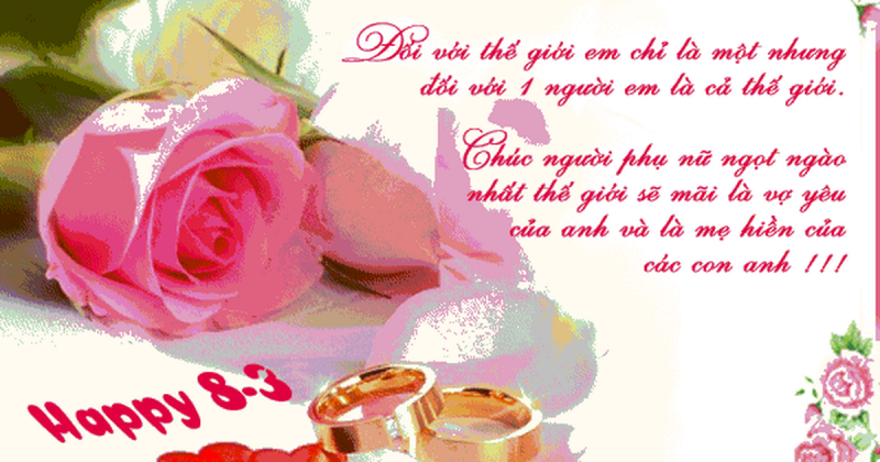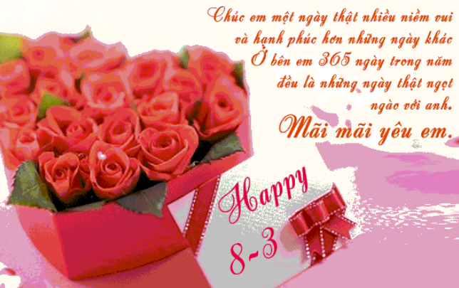 (Dịch: Hi vọng rằng em tìm thấy nhiều niềm hạnh phúc nhất có thể, giống như em đã góp phần tạo nên niềm vui trong cuộc sống của anh. Chúc mừng ngày Quốc tế Phụ nữ, em yêu!)