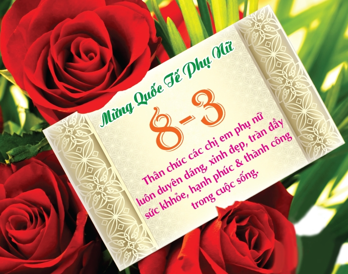 Nhân ngày Quốc tế phụ nữ 8/3, xin chúc bạn luôn thành công trong công việc, hạnh phúc trong tình yêu và trọn vẹn cuộc sống.