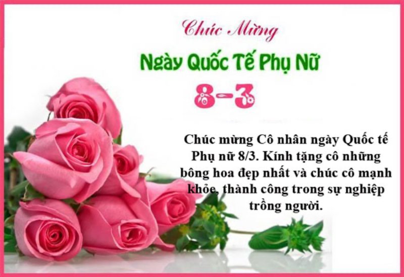 (Dịch: Gửi những lời chúc ấm áp vào ngày Quốc tế Phụ nữ tới cô giáo tuyệt vời nhất đã luôn ở bên em như ánh sáng rực rỡ soi đường cho em trong cuộc đời.)
