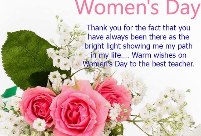 Dear teacher, you are the light who has led me through each and every stage of life; thus, I am sending you heartfelt greetings on Women's Day.