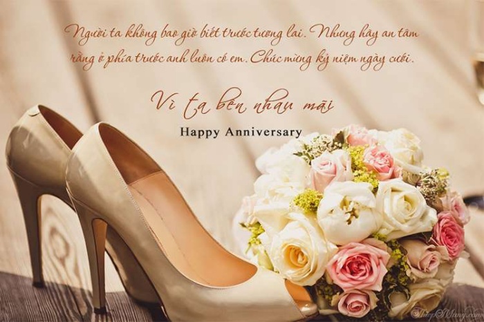 Năm dài, tháng rộng chỉ mong rằng tình yêu của chúng mình đủ mạnh mẽ để vượt qua sóng gió của hôn nhân. Hy vọng, kỷ niệm ngày cưới của những năm về sau chúng mình mãi luôn hạnh phúc.