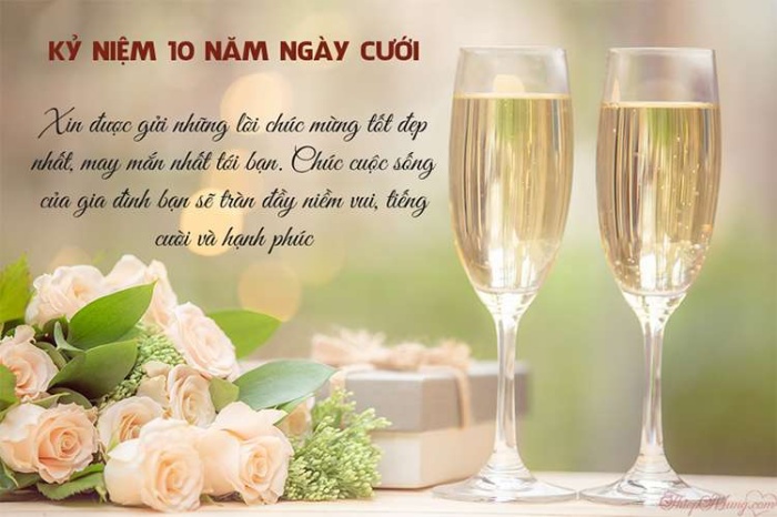 Chúc mừng kỷ niệm ngày cưới. Tối ngày xung đột, tranh cãi mà không ngờ sống chung đã 10 năm. Giỡn với vợ chứ, chúc vợ thật hạnh phúc trong ngày đặc biệt.