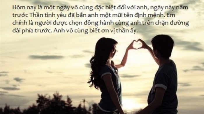 Người ta sinh ra không phải là để chết đi, mà để ở bên cạnh người mình yêu cho tới giây phút cuối cùng của cuộc đời. Hôm nay nhân ngày kỷ niệm của hai bạn, mình xin dành những lời chúc tốt đẹp nhất, mong rằng tình yêu của hai bạn vẫn luôn luôn vàng son như những ngày đầu, cùng nhau vượt qua mọi khó khăn nhé.