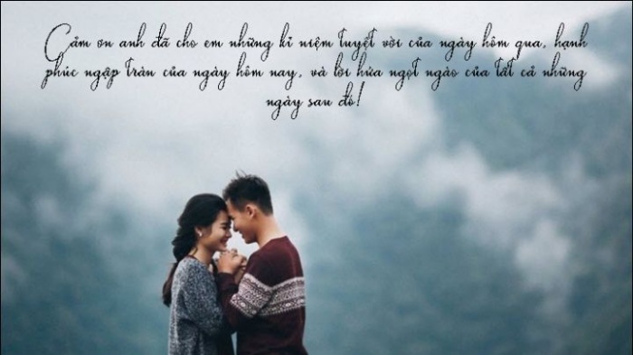 Cảm ơn anh/em vì vẫn ở cạnh em/anh sau bao khó khăn trắc trở. Anh và em là cặp đôi yêu thích của em/anh.