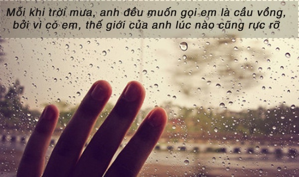 Tôi yêu mưa vì mưa chính là vỏ bọc cảm xúc. Tôi yêu mưa vì trong cơn mưa tôi có thể khóc khi đang cười.