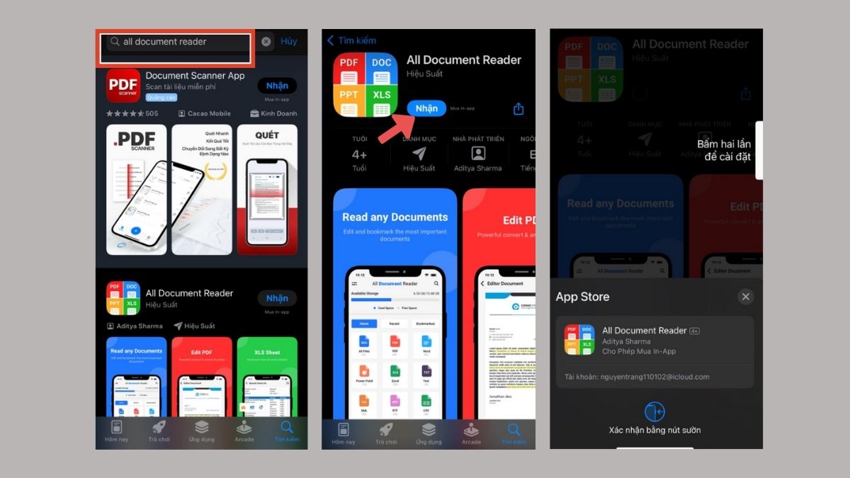 Bước 1: Mở ứng dụng App Store trên điện thoại > Hãy tìm kiếm ứng dụng Document Reader.