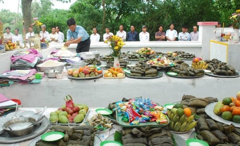 - Mâm Cỗ Cúng: Xôi, gà, canh măng, miến xào, thể hiện sự chu đáo và lòng thành kính.