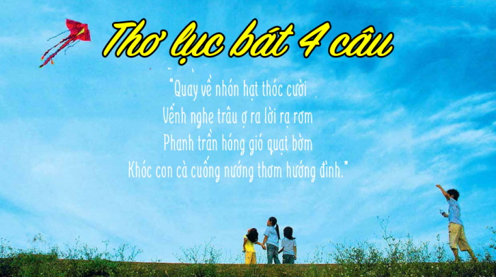 Thơ lục bát 4 câu là một thể thơ của Việt Nam, gồm 2 câu thơ 6 âm tiết và 2 câu thơ 8 âm tiết xen kẽ nhau. Cách làm thơ dựa trên quy luật bằng trắc và gieo vần giữa câu 6 và câu 8 để tạo ra một vế đối hoàn chỉnh.