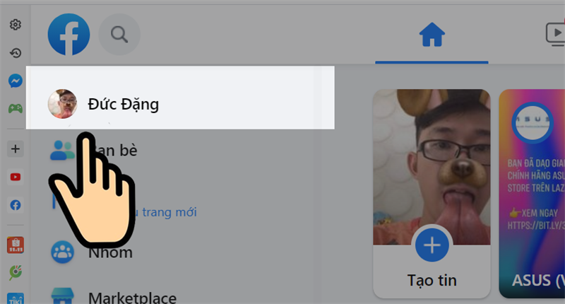 Bước 1: Đầu tiên, bạn truy cập vào trang Facebook và đăng nhập tài khoản-> Click vào ảnh đại điện Facebook bên góc trái.