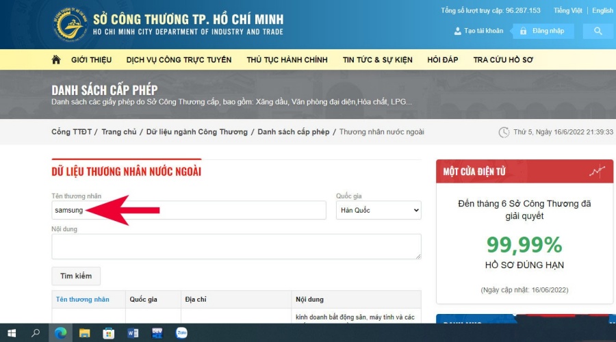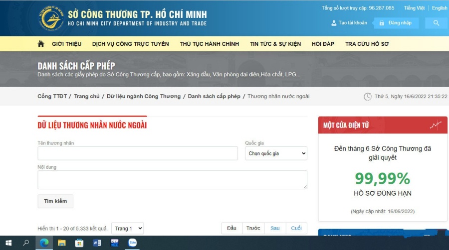 Bước 1: Đầu tiên, bạn truy cập vào trang tìm kiếm của Sở công thương TP. Hồ Chí Minh.