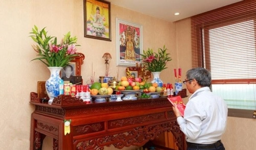 Theo đó, khi cúng gia chủ sẽ đứng trước bàn thờ hành lễ bằng cách chắp tay trước ngực vái hoặc đứng lên ngồi xuống để lạy và đọc bài văn khấn mà mình đã chuẩn bị sẵn.