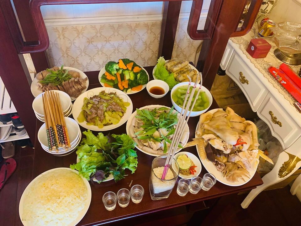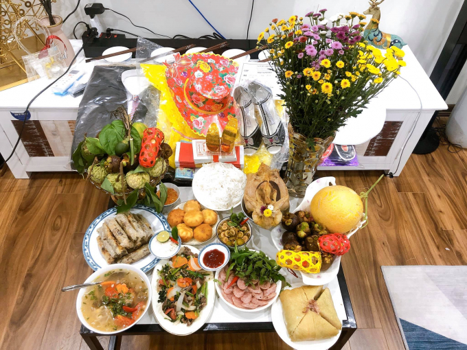 - Mâm cỗ mặn cúng thần linh, ông bà tổ tiên: 1 con gà trống nguyên con (luộc), xôi/bánh chưng, 1 bình hoa tươi, 1 đĩa trái cây, rượu, nước,.. (tuỳ vào điều kiện của mỗi gia đình.