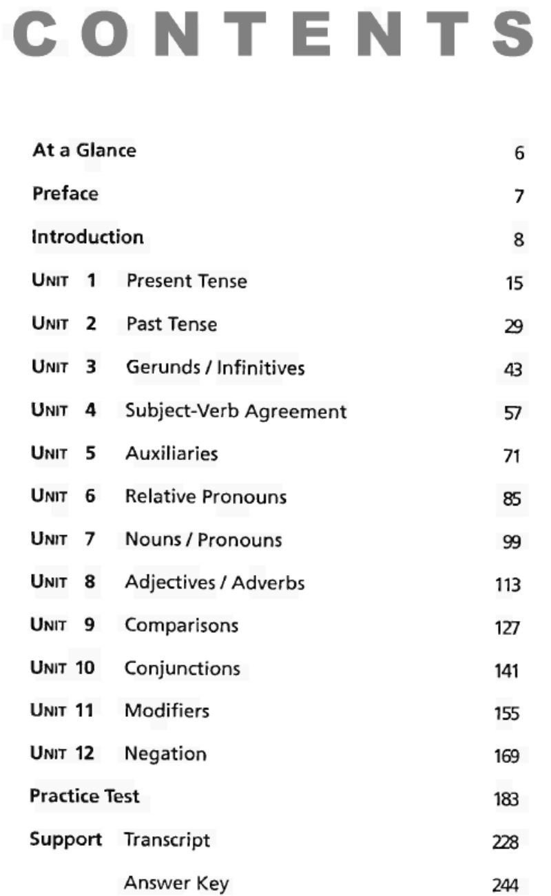 Nhìn chung, Very Easy Toeic cung cấp cho người học những nội dung cơ bản nhất của ngữ pháp tiếng Anh cần sử dụng và thưởng xuất hiện trong bài thi TOEIC một cách rất chi tiết và dễ hiểu. Trong phần này, người học sẽ tiếp cận những chủ điểm ngữ pháp thường gặp, bắt đầu bằng một lời giải thích ngắn gọn về từng nội dung ngữ pháp sẽ được học trước khi bước vào phần chính.