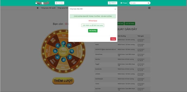 Bước 4: Kế đến, bạn nhấn nút “Quay” để tham gia quay số may mắn