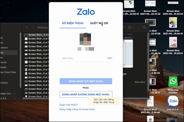 Bước 2: Tiến hành nhập số điện thoại đã đăng ký Zalo (không nhập số 0 đầu) và mật khẩu tài khoản Zalo của bạn > Chọn Đăng nhập với mật khẩu hoặc Nhấn Enter.