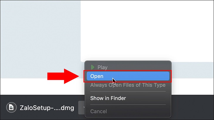 Bước 2: Sau khi tải xong, mở tập tin vừa tải về máy. Để tiến hành cài đặt Click 2 lần chuột trái hoặc nhấp chuột phải chọn Open.